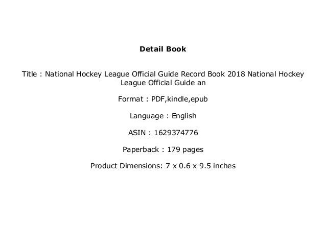 Pdf Download National Hockey League Official Guide Record Book