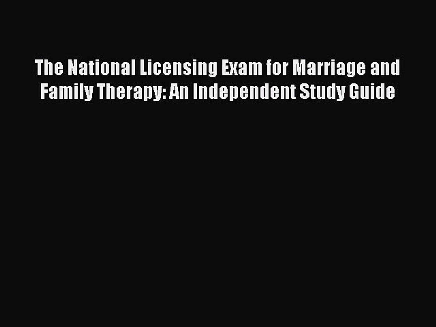 Study Guide For The Marriage And Family Therapy National Licensing